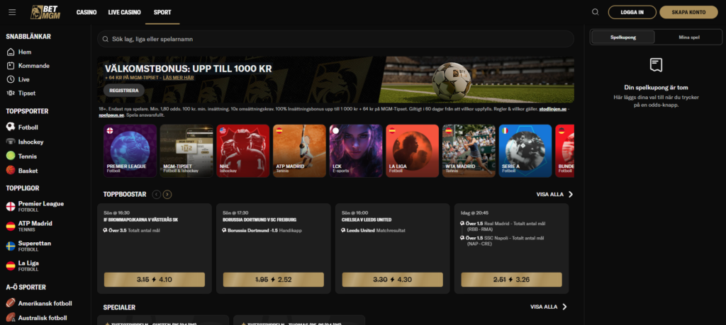 I övrigt går BetMGM att känna igen. Det är fortfarande möjligt att se inslag som MGM-tipset, numera som del av snabblänkarna i menyn, och andra kampanjer som specialer och oddsboostar finns fortsatt kvar med en aningen ny design.
