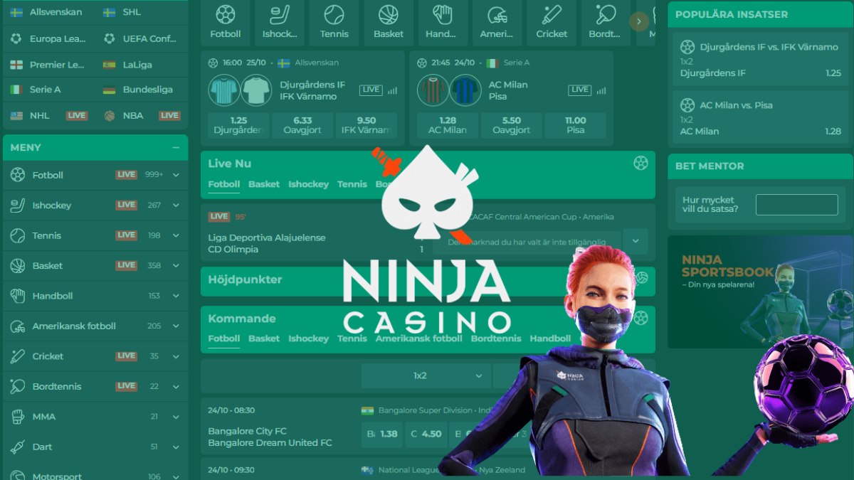 Ninja Casino breddar sitt utbud och lanserar nu en egen sportsbook på den svenska marknaden. Lanseringen sker utan någon sportbonus, men med ett imponerande oddsutbud via Altenars plattform, samma leverantör som driver sportsbooken hos flera välkända europeiska aktörer.