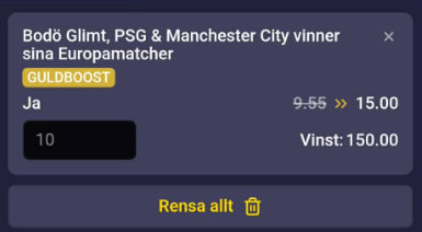 På Onerush erbjuds man nämligen guld boostade odds, vilket är spelbolagets egenstyrda odds som de kan boosta hur mycket de vill, till skillnad från vanliga förhöjda odds som sätts av Altenar.