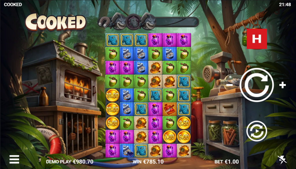 Cooked är en videoslot från Hold Your Hat med sex hjul, medium volatilitet och en maxvinst på upp till 10 000 gånger insatsen. Spelet innehåller flera bonusspel samt en köp-bonusfunktion.