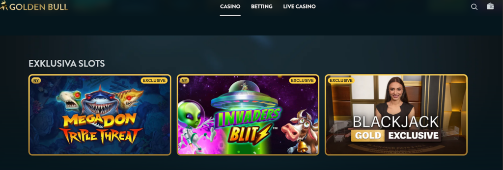 Exklusiva spel är precis som det låter – unika speltitlar som inte finns hos alla spelbolag. Golden Bull Casino har en egen kategori för detta och är duktiga på att regelbundet erbjuda sina kunder unikt innehåll som inte går att hitta överallt – vilket vi fick se konkreta exempel på.