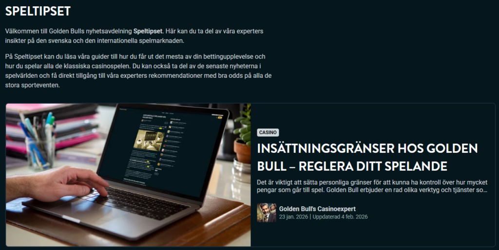 Spelbolaget har precis som en del varumärken inom koncernen en egen sektion där man regelbundet publicerar nyheter, guider och finns för både casino och betting. Sektionen kallas för “Speltipset” och finns längst ner på sajten.