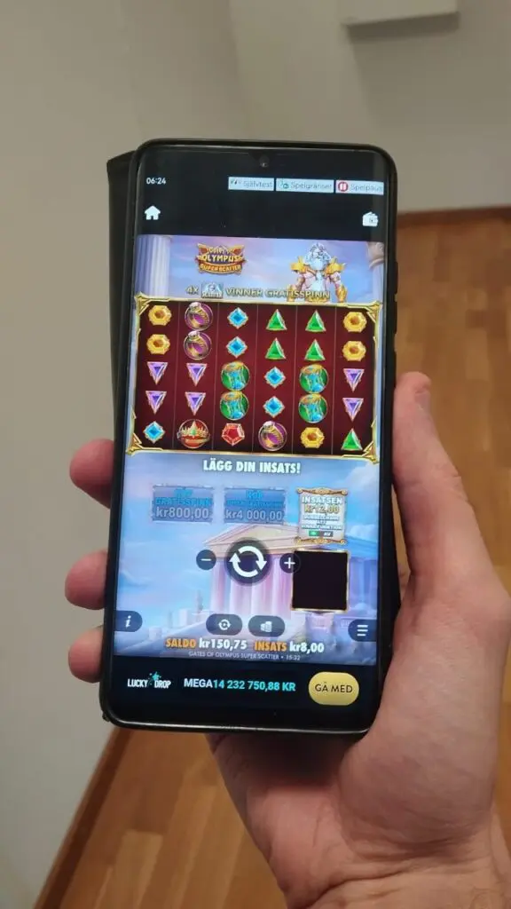 Bettingbladets testare spelar Gates of Olympus Super Scatter