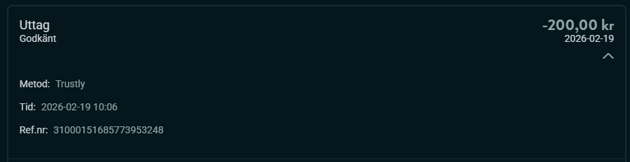 | 🏦 Uttagstest | 200 kr | Via Trustly |