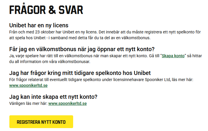 Unibet – en av de mest välkända aktörerna på den svenska spelmarknaden meddelade i förra veckan sina kunder att man kommer verka under en ny spellicens från och med den 23:e oktober 2025. Konsekvenserna av den nya spellicensen innebar att konton under Spooniker Ltd stängdes permanent, samt att pågående spel som avlutas efter detta datum ogiltigförklaras – något som rörde upp känslor bland spelarna